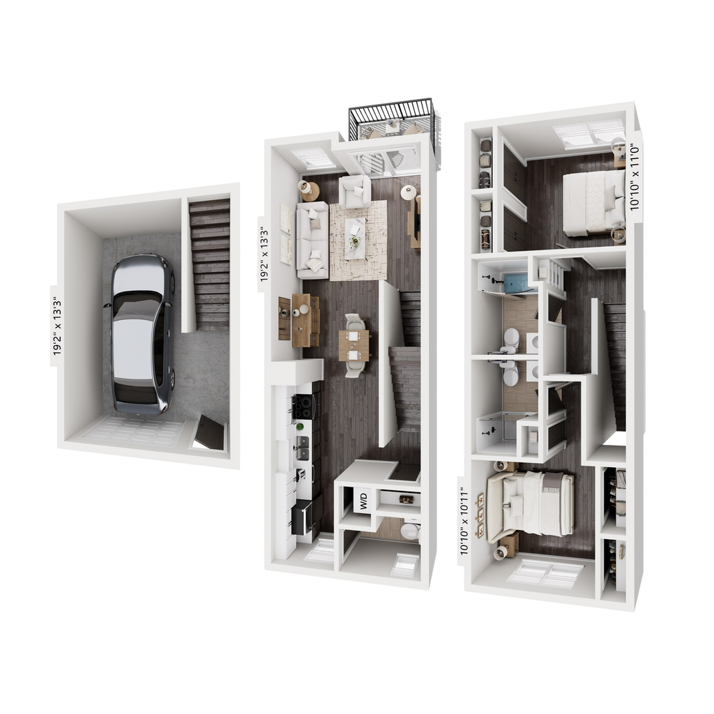 2 Dormitorios, 2.5 Baños, 1201 pies²Disponible AhoraGalería del Modelo