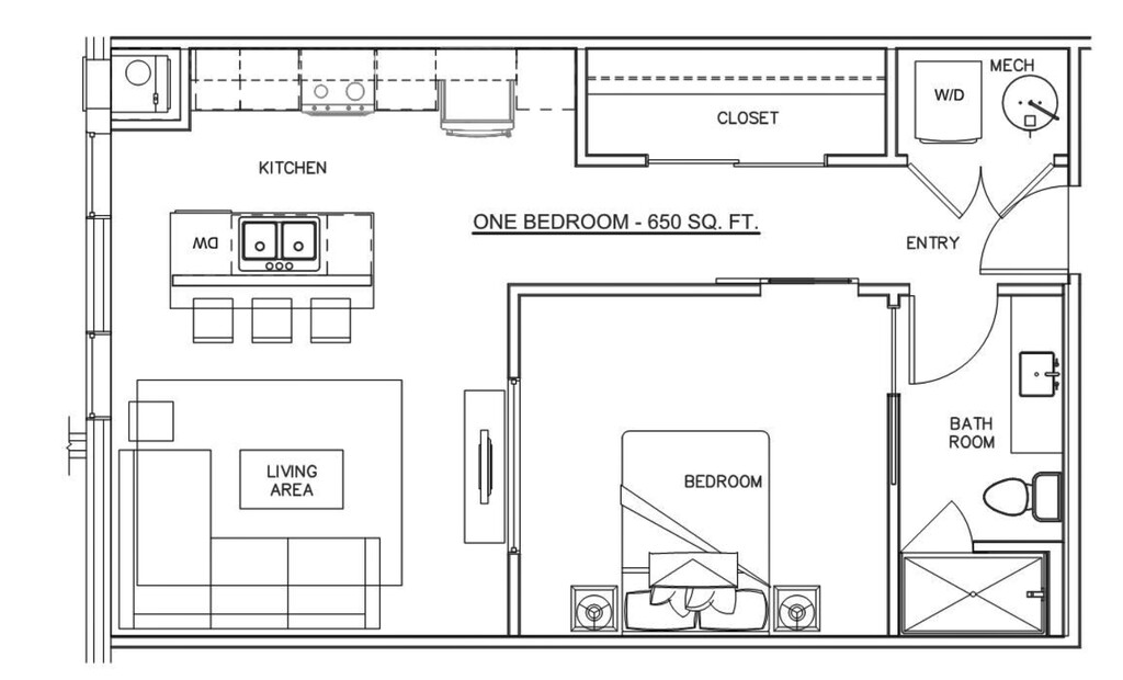 1 Dormitorio, 1 Baño, 680 pies²Disponible AhoraGalería del Modelo