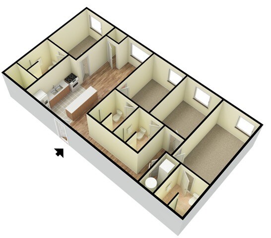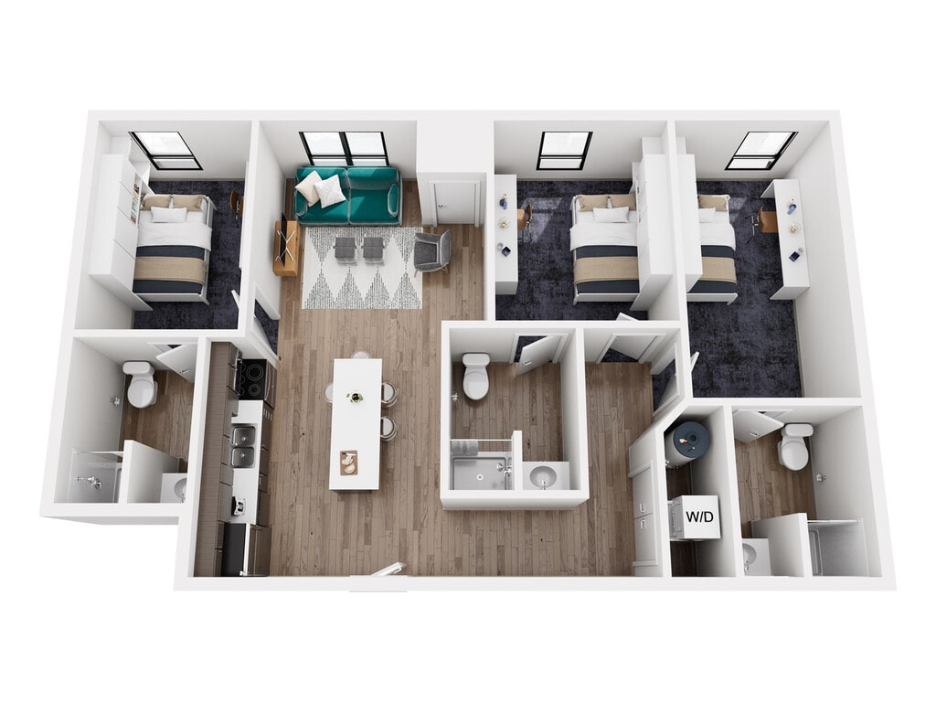 Modelo de apartamento: 4 BEDROOM, 4 BATHDesde $5904 Dormitorios, 4 Baños, 1185-1300 sq ftDisponible AhoraLos planos de la planta son una interpretación artística. Todas las dimensiones son aproximadas. Los tamaños o el detalle del producto real y sus especificaciones pueden variar. No todas las características están disponibles en todos los hogares para rentar. Los precios y la disponibilidad están sujetos a cambios. El alquiler que se muestra es mensual. Se pueden aplicar ciertos cargos, por ejemplo, entrega de paquetes, recolección de basura, agua, servicios, etc. Depositos varian. Consulta a un representante para conocer detalles.