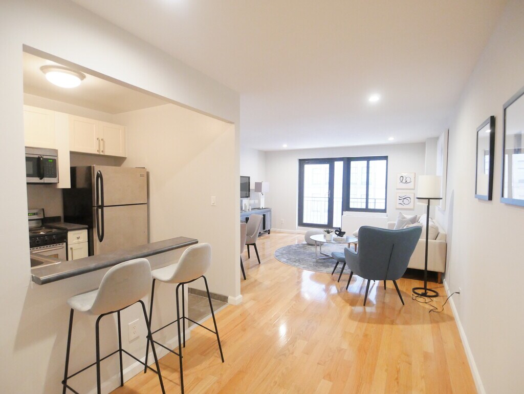 Un edificio de media altura construida para durar. 77 Fifth Ave cuenta con lavandería en el edificio, un superintendente en el lugar y elevadores. Los apartamentos tienen ventanas de doble panel, un lavaplatos y balcones.