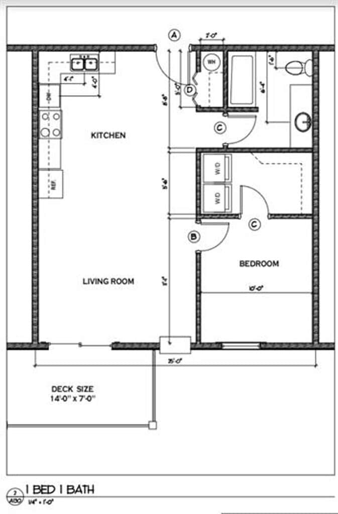 1 Dormitorio, 1 Baño, 700 pies²Galería del Modelo