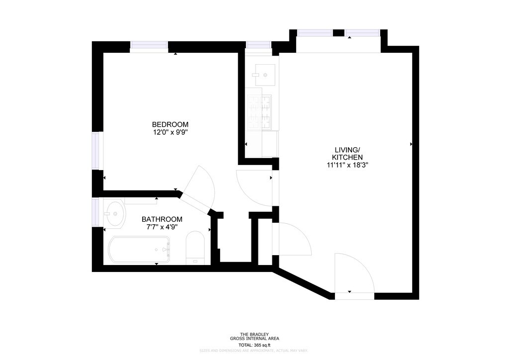 Modelo de apartamento: The BradleyDesde $1,2501 Dormitorio, 1 Baño, 418 sq ftDisponible Ahora![]()