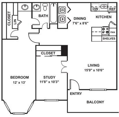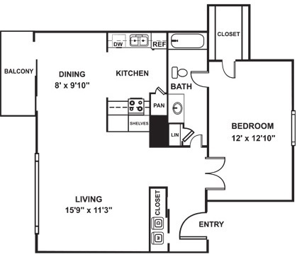Modelo de apartamento: The Asbury$8251 Dormitorio, 1 Baño, 566 sq ftDisponible Ahora![]()