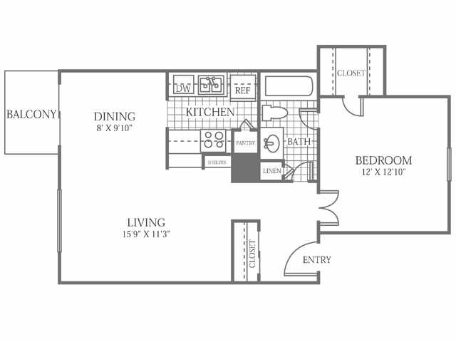 Modelo de apartamento: The Abberly$9201 Dormitorio, 1 Baño, 665 sq ftDisponible AhoraPlanosFotos![]()