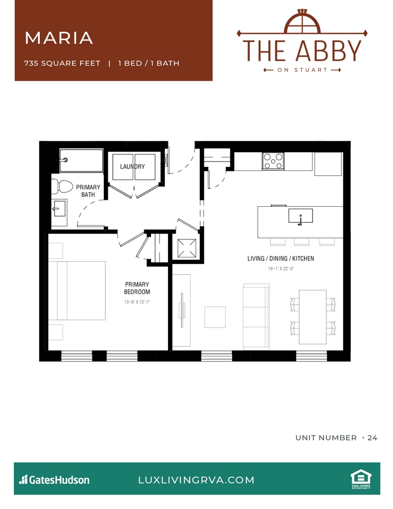 # 24 - Plano 1 Unidad de apartamento: 24Modelo de apartamento: # 24$1,9001 Dormitorio, 1 Baño, 735 sq ftDisponible May 7, 20262 Dormitorios