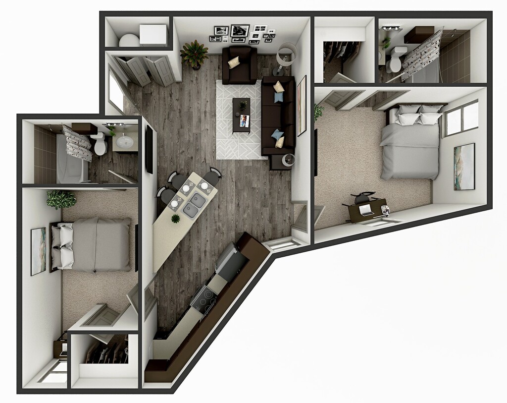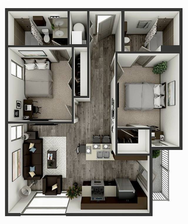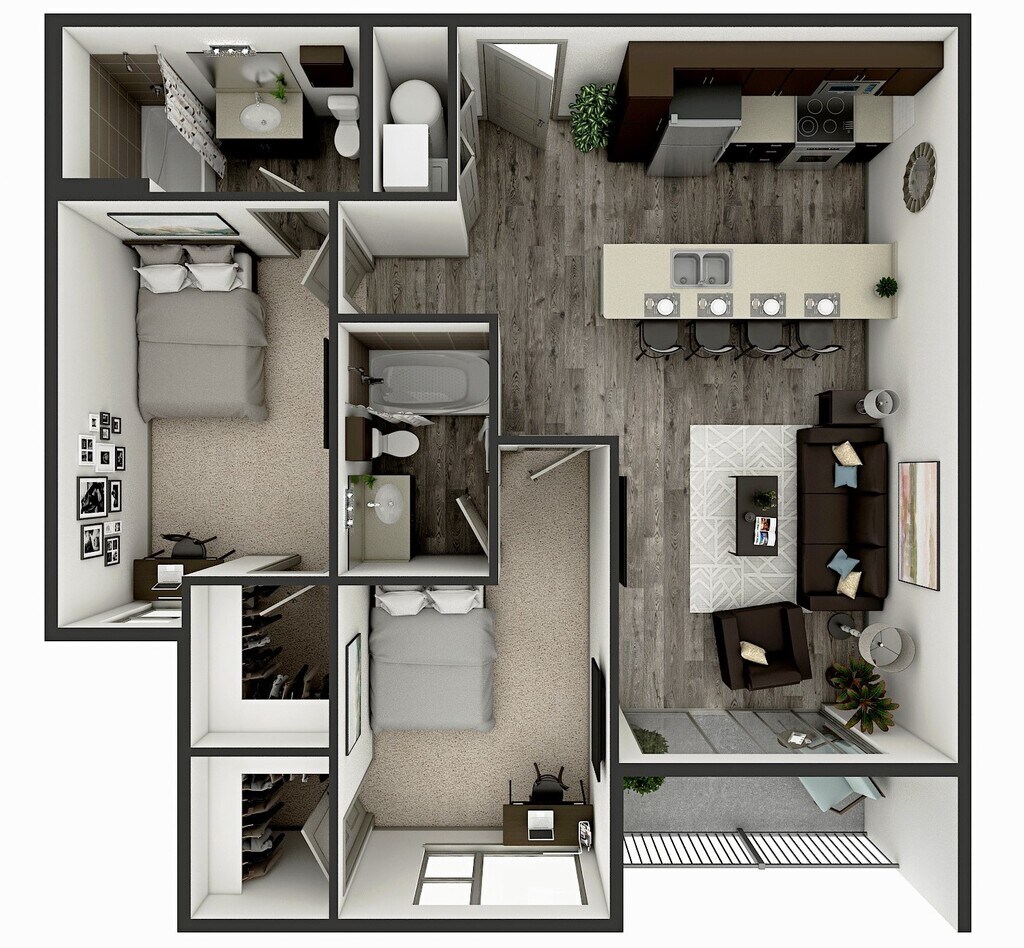 Modelo de apartamento: A2Desde $1,6451 Dormitorio, 1 Baño, 538 sq ftDisponible August 11, 2026![]()