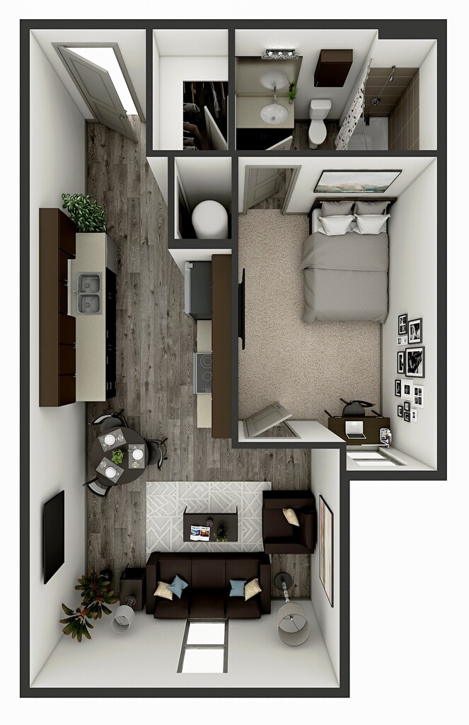 Estudio, 1 Baño, 434 pies²Disponible August 11, 2026Galería del Modelo