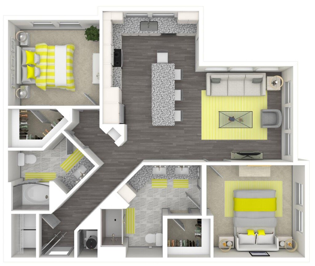Modelo de apartamento: A2- InspirationLlame para Precios1 Dormitorio, 1 Baño, 739 sq ftNo Disponible![]()
