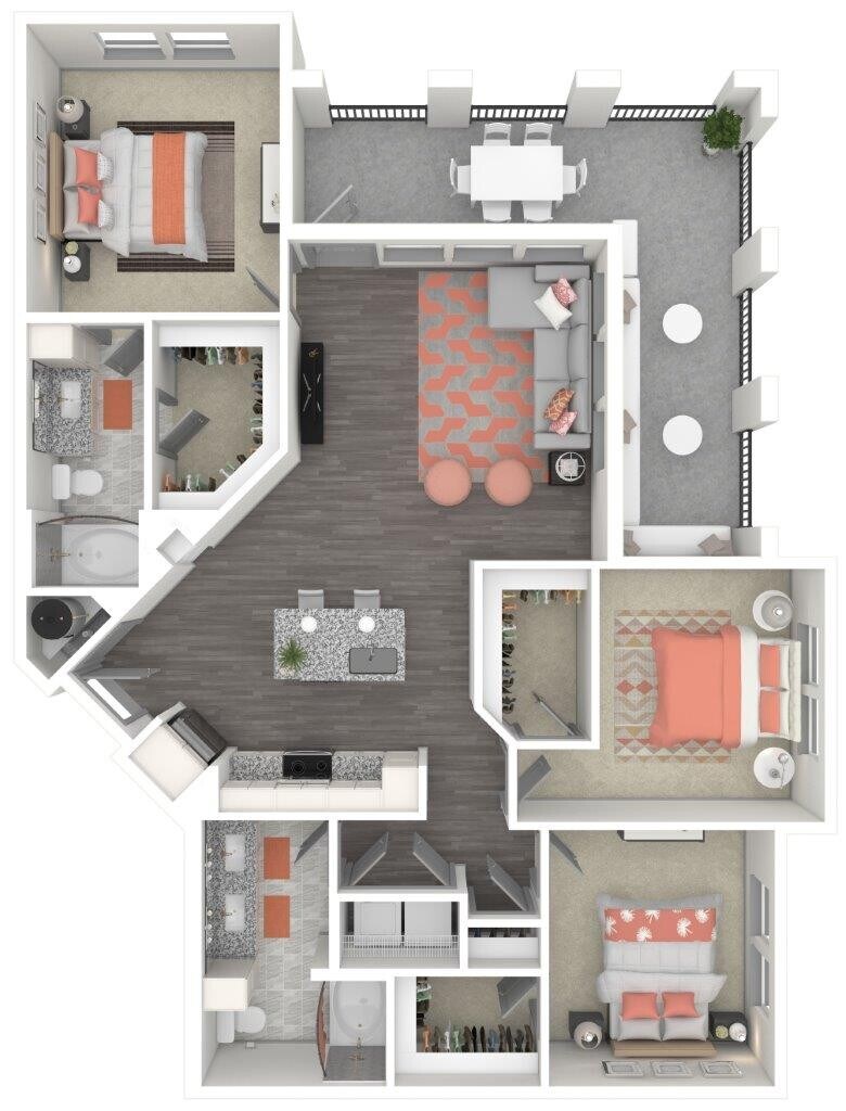 Modelo de apartamento: A3 The SoulfulLlame para Precios1 Dormitorio, 1 Baño, 831 sq ftNo Disponible![]()