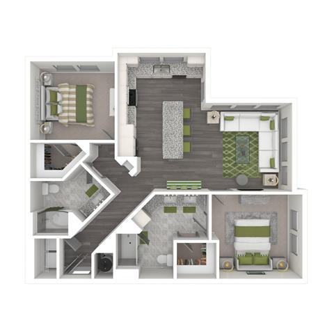 1 Dormitorio, 1 Baño, 739 pies²Disponible AhoraGalería del Modelo