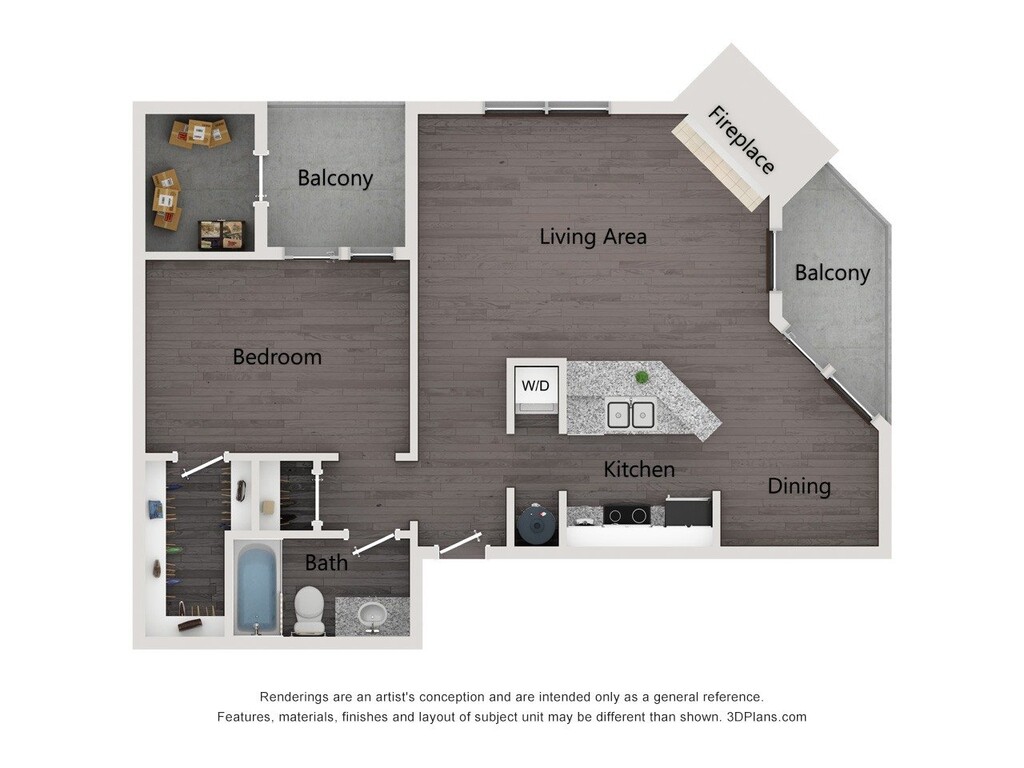 Modelo de apartamento: A1Desde $1,2861 Dormitorio, 1 Baño, 750 sq ftDisponible AhoraPlanosFotos![]()