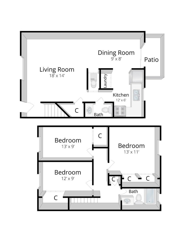 Modelo de apartamento: 3 Bedroom TownhomeDesde $1,8123 Dormitorios, 1.5 Baños, 1092 sq ftNo Disponible![]()