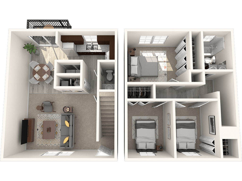 Modelo de apartamento: 2 Bedroom TownhomeDesde $1,4012 Dormitorios, 1.5 Baños, 1000 sq ftDisponible Ahora![]()