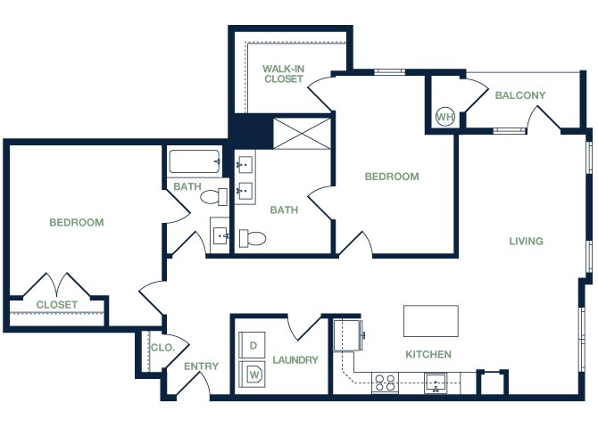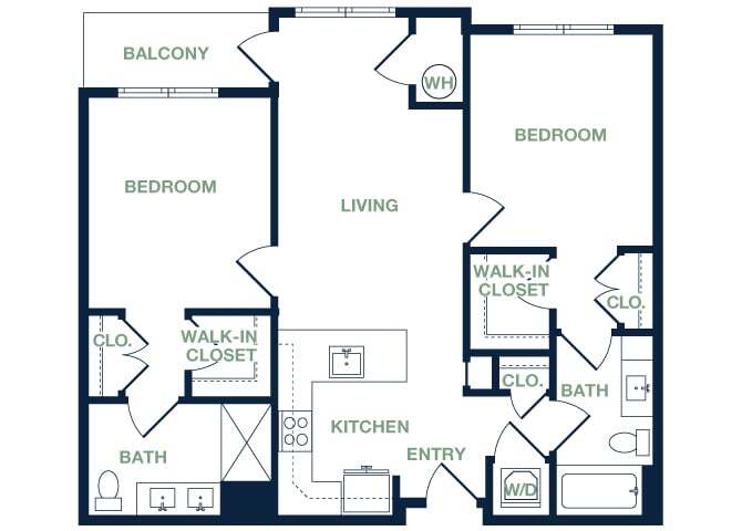 Modelo de apartamento: A8Desde $2,0171 Dormitorio, 1 Baño, 928 sq ftDisponible Ahora![]()