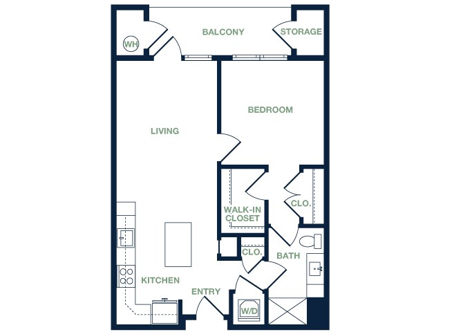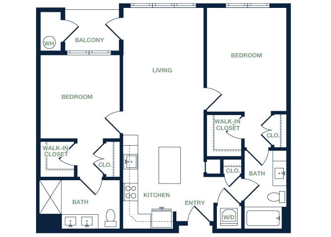 Modelo de apartamento: A2Llame para Precios1 Dormitorio, 1 Baño, 709 sq ftNo Disponible![]()