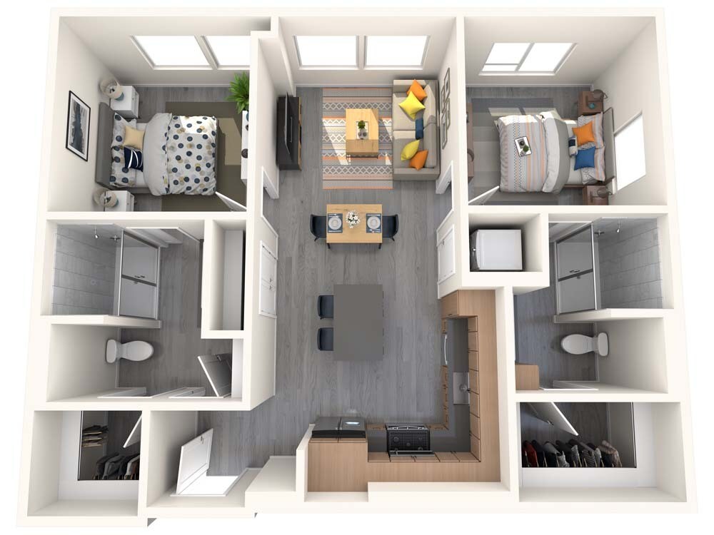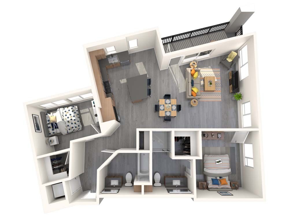 Modelo de apartamento: BakerDesde $2,1851 Dormitorio, 1 Baño, 696 sq ftDisponible Ahora![]()