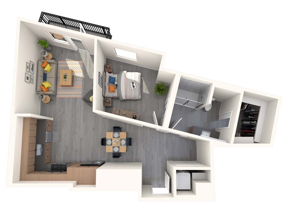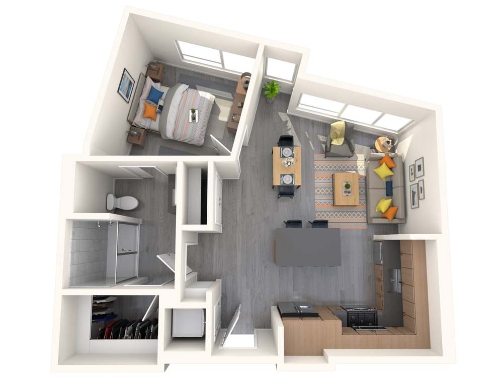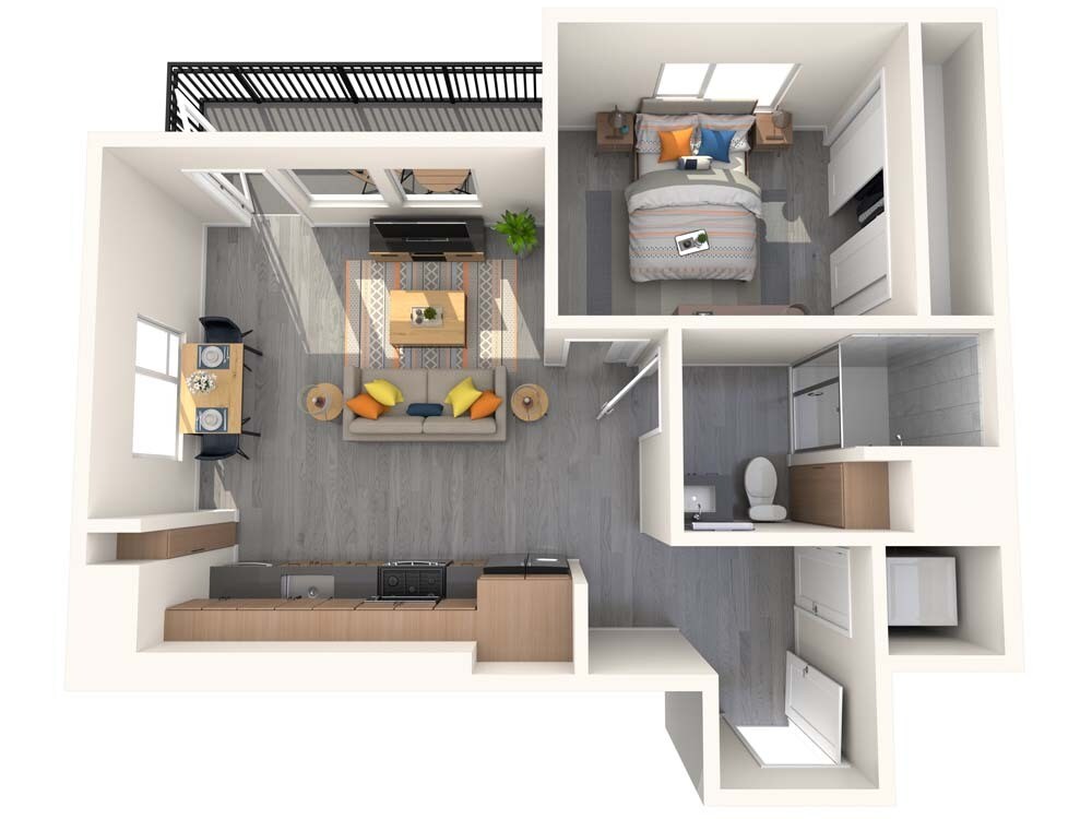 1 Dormitorio, 1 Baño, 714 pies²Disponible AhoraGalería del Modelo
