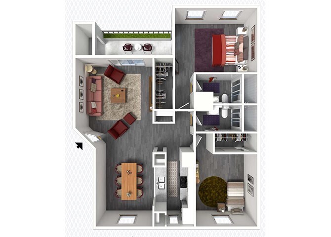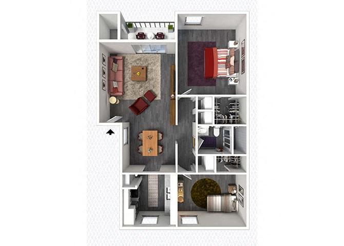Modelo de apartamento: A1Desde $6991 Dormitorio, 1 Baño, 684 sq ftDisponible Ahora![]()