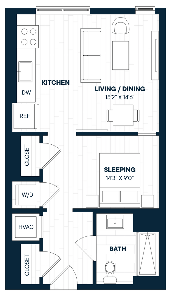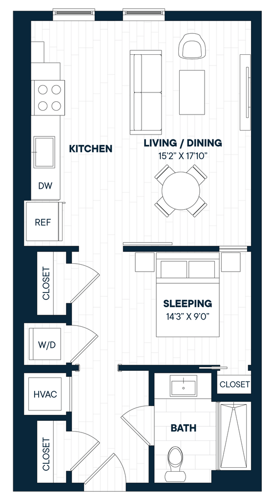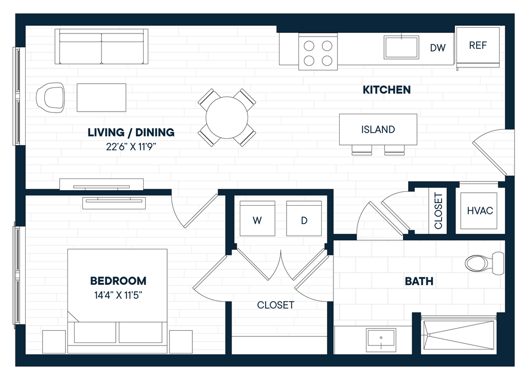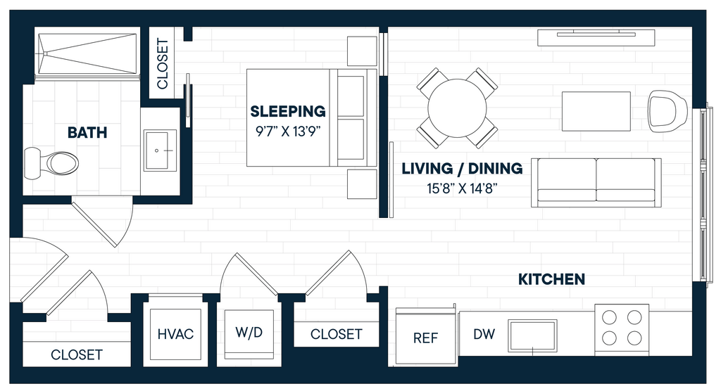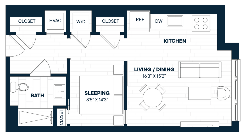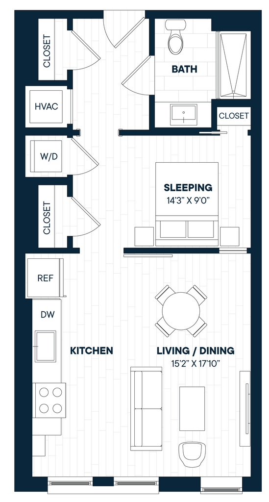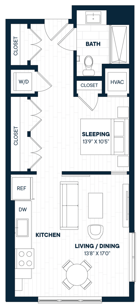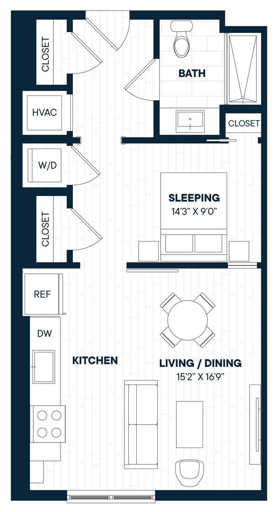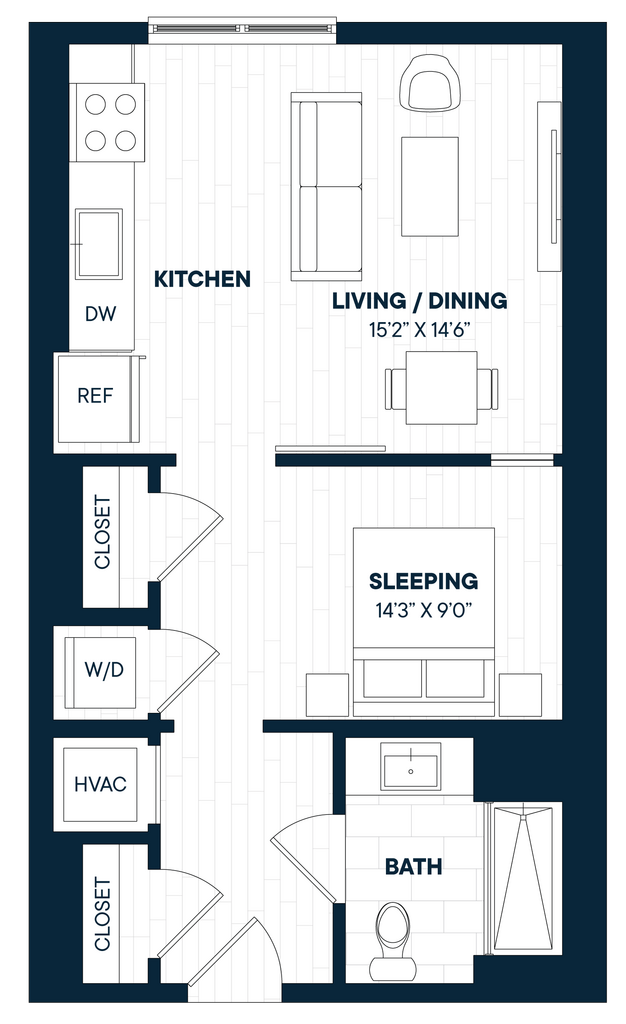 Estudio, 1 Baño, 573 pies²Disponible AhoraGalería del Modelo