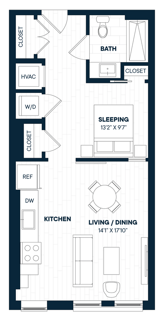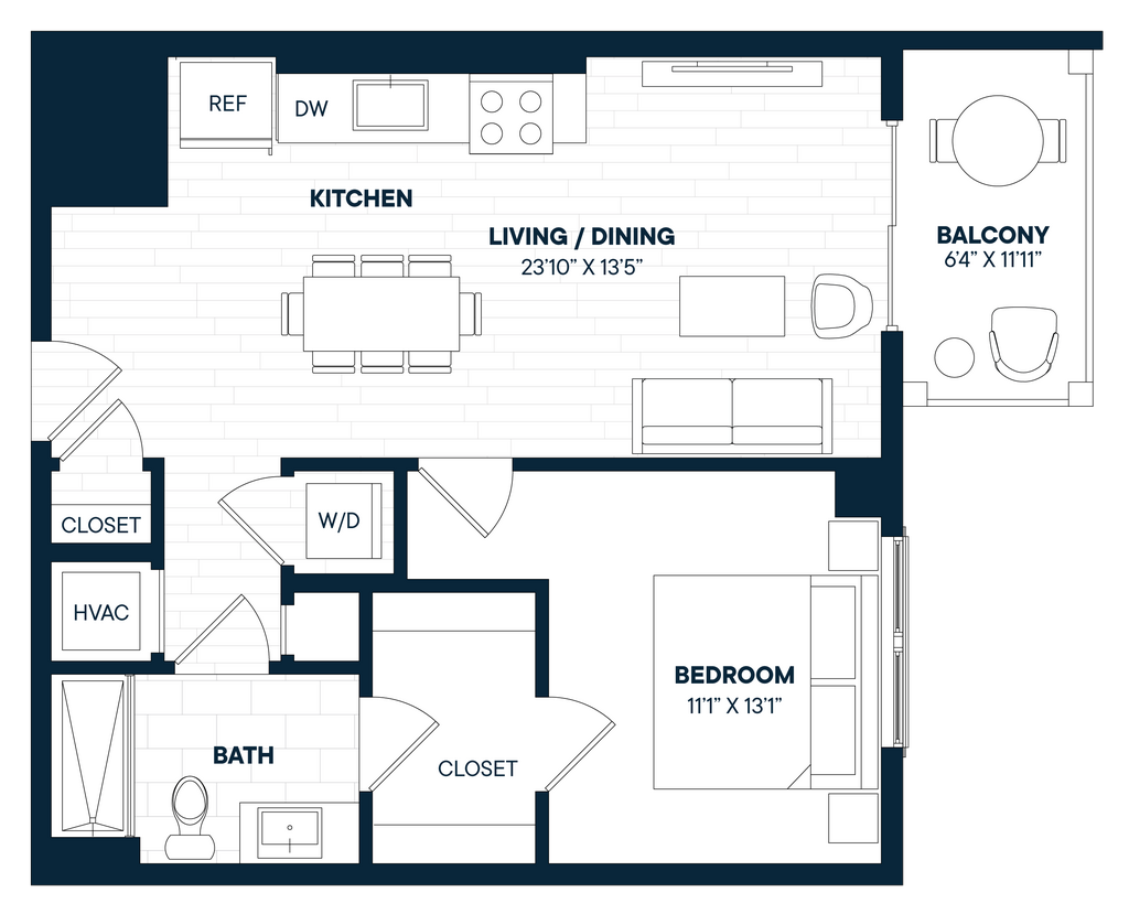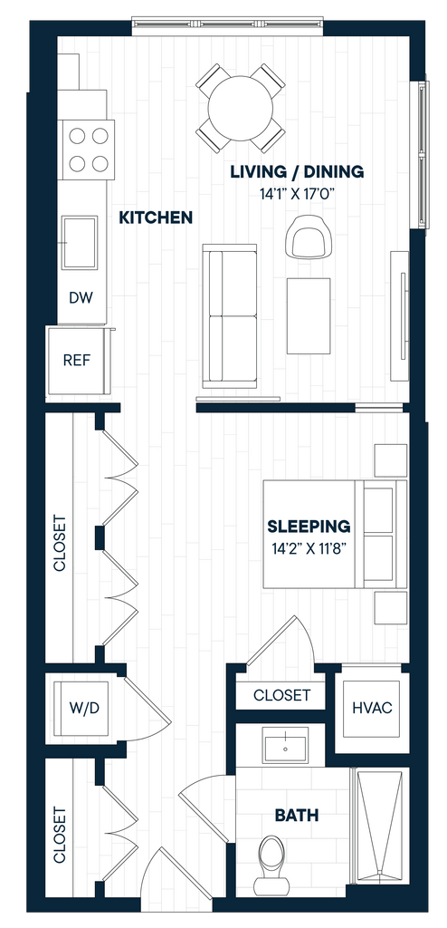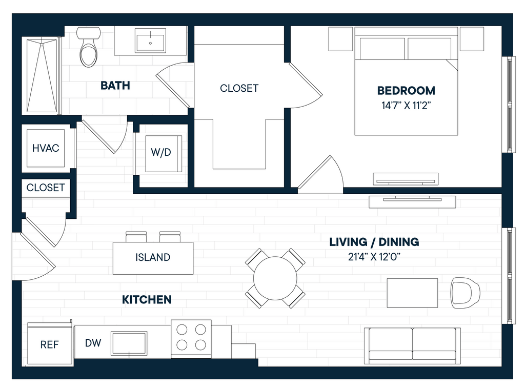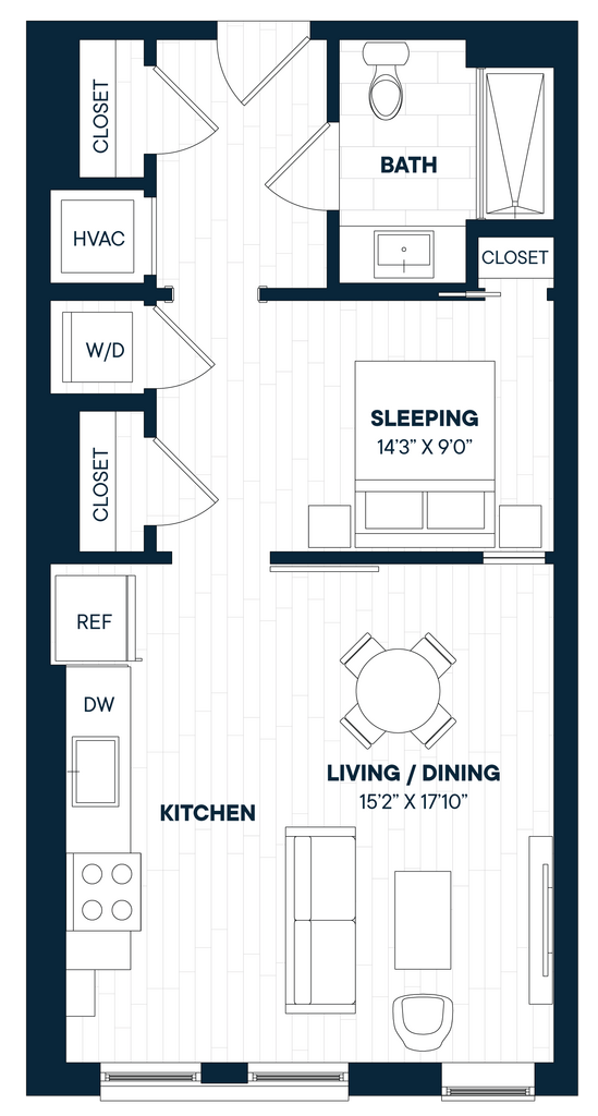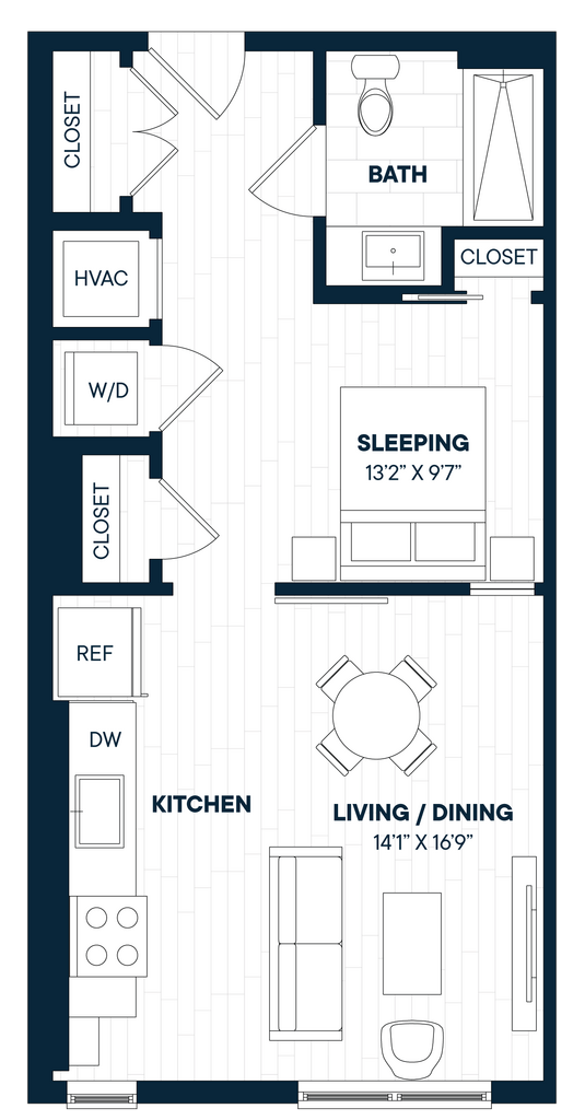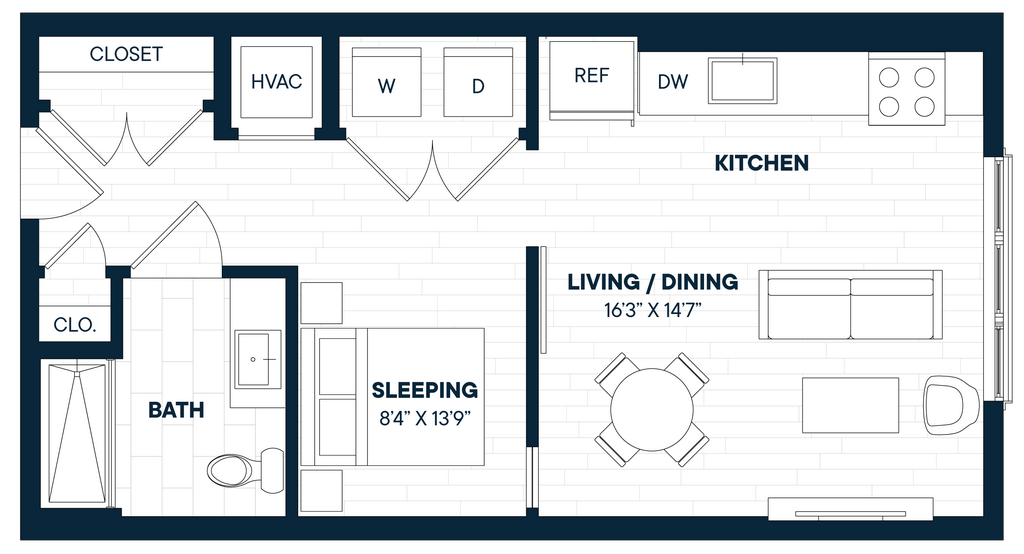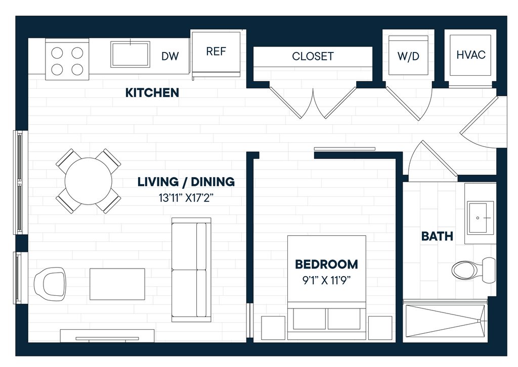 Estudio, 1 Baño, 573 pies²Disponible AhoraGalería del Modelo