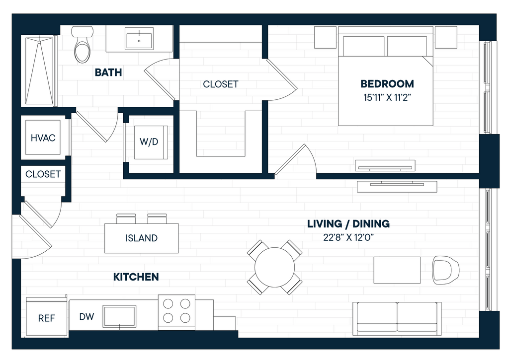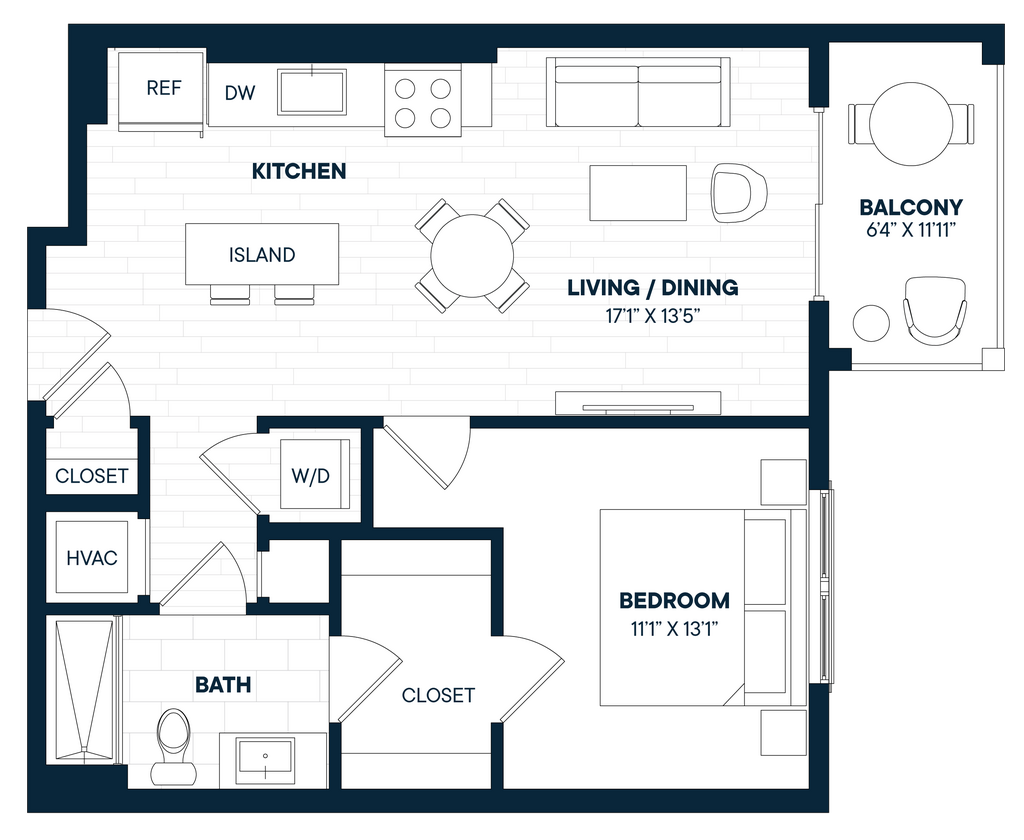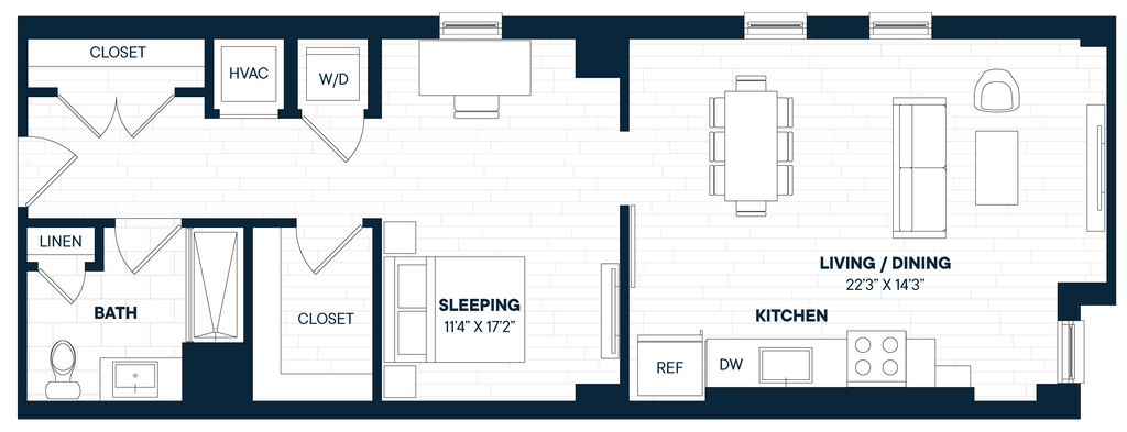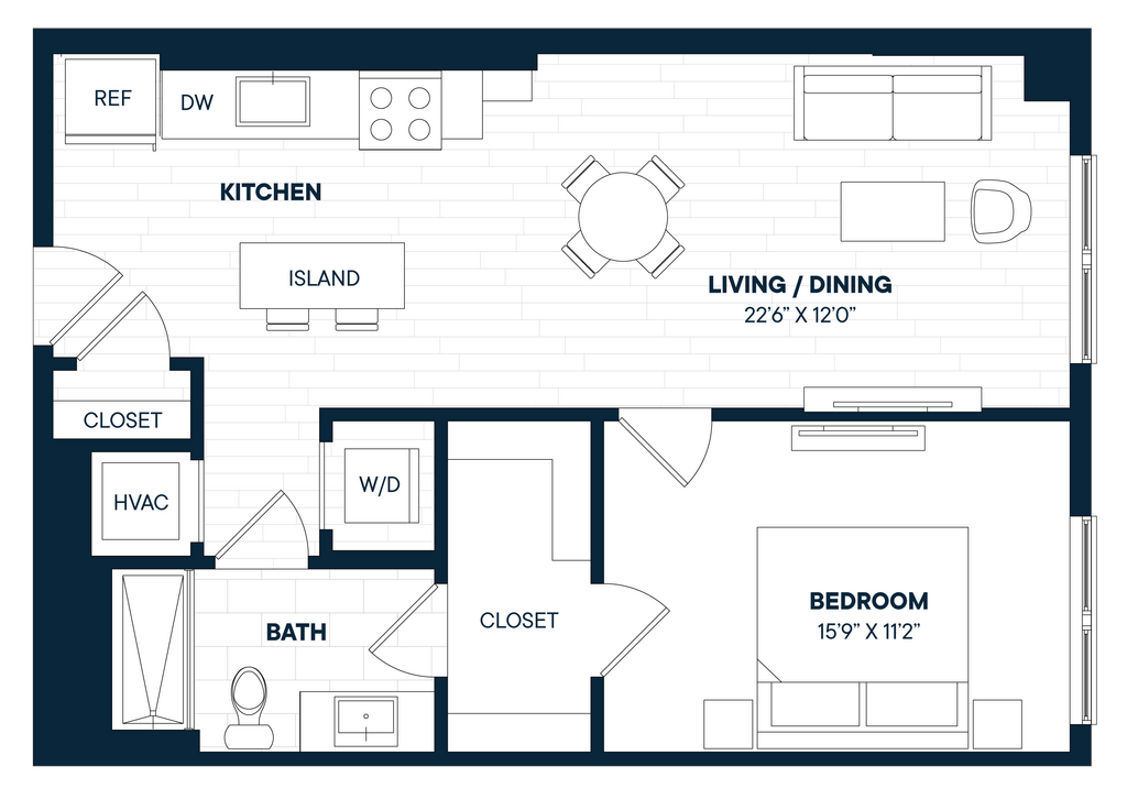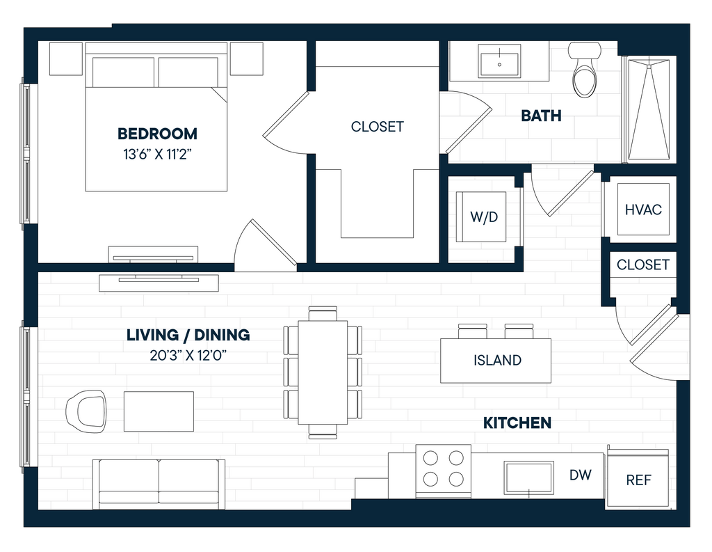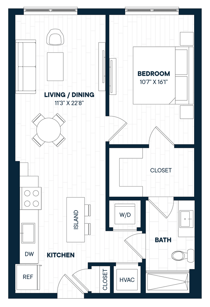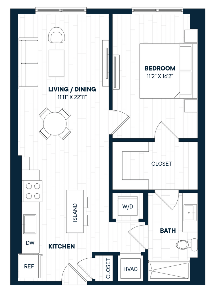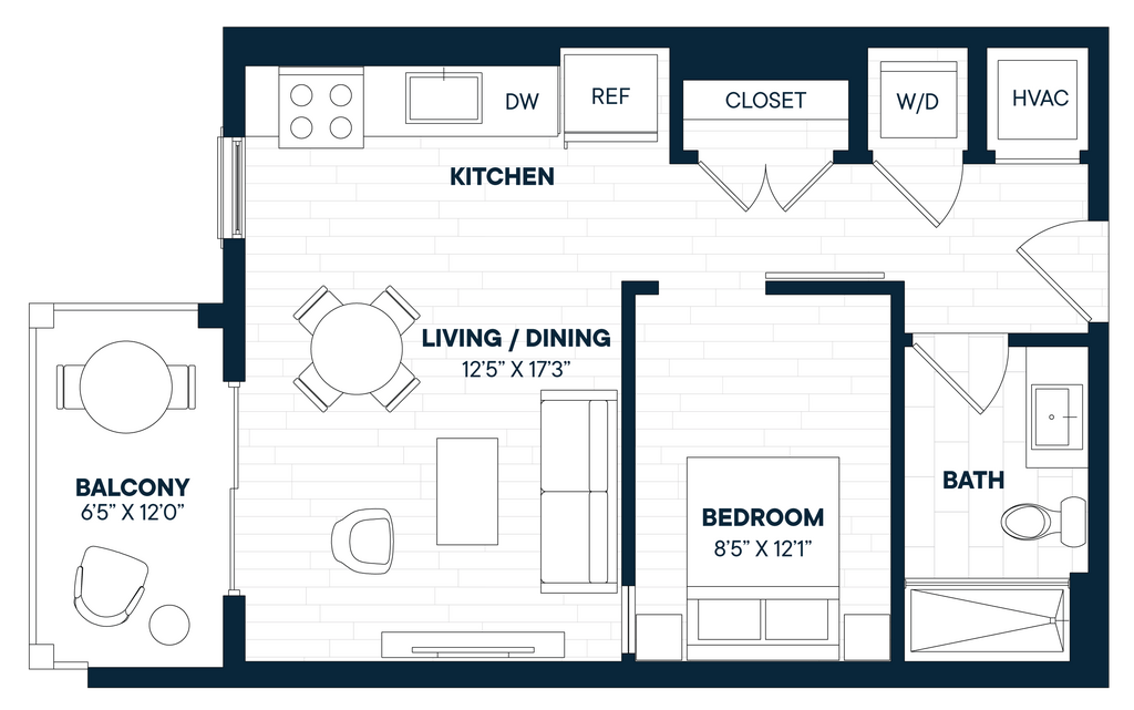 Estudio, 1 Baño, 573 pies²Disponible AhoraGalería del Modelo
