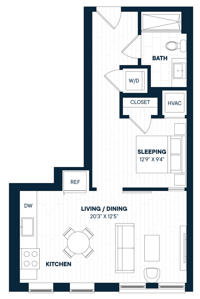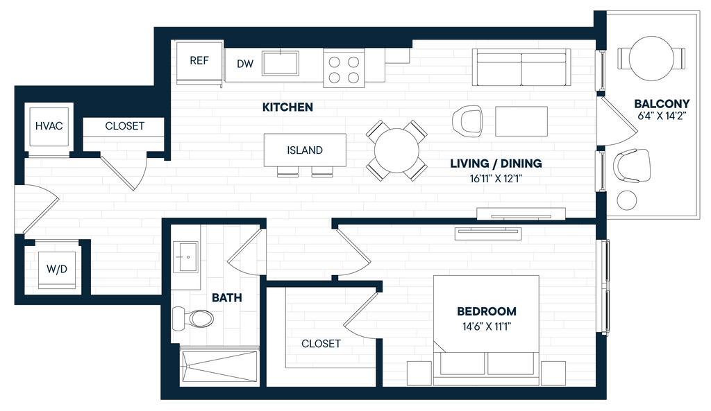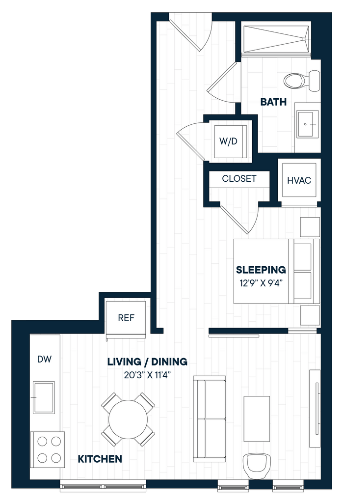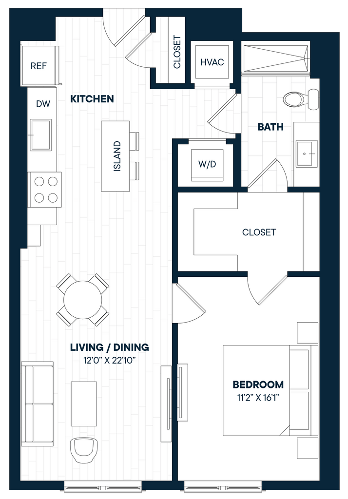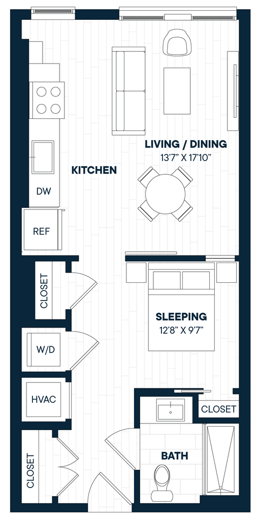 Estudio, 1 Baño, 571 pies²Disponible AhoraGalería del Modelo