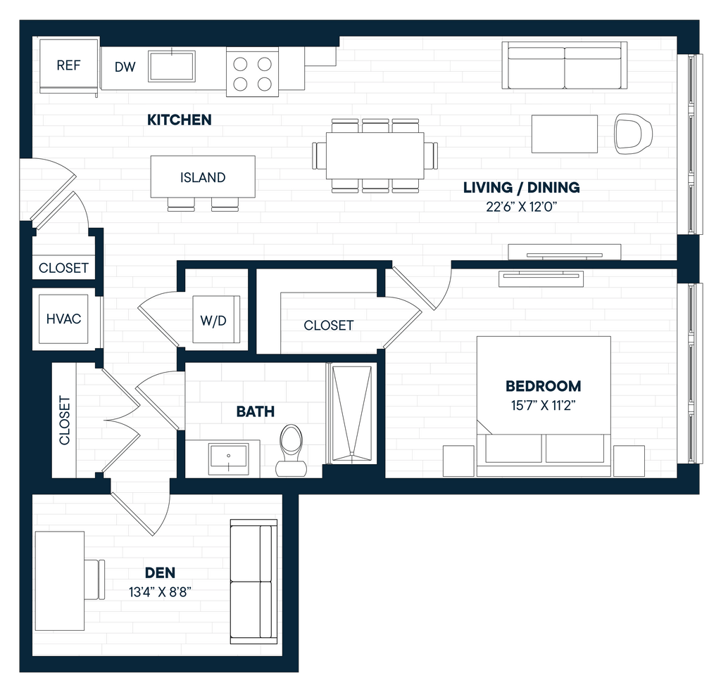 Estudio, 1 Baño, 578 pies²Disponible AhoraGalería del Modelo