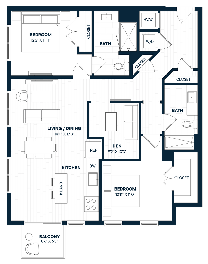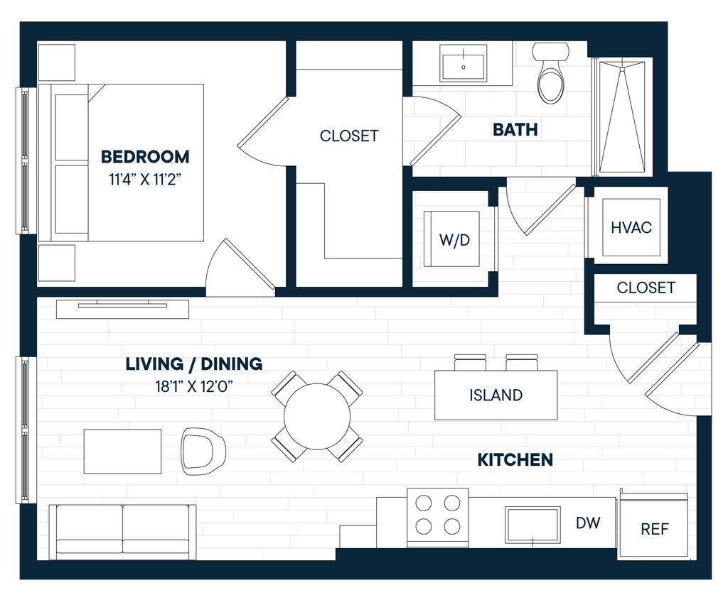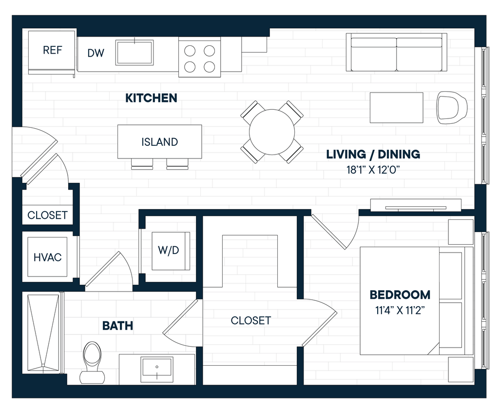Modelo de apartamento: Studio-S18aDesde $2,362Estudio, 1 Baño, 573 sq ftDisponible Ahora![]()