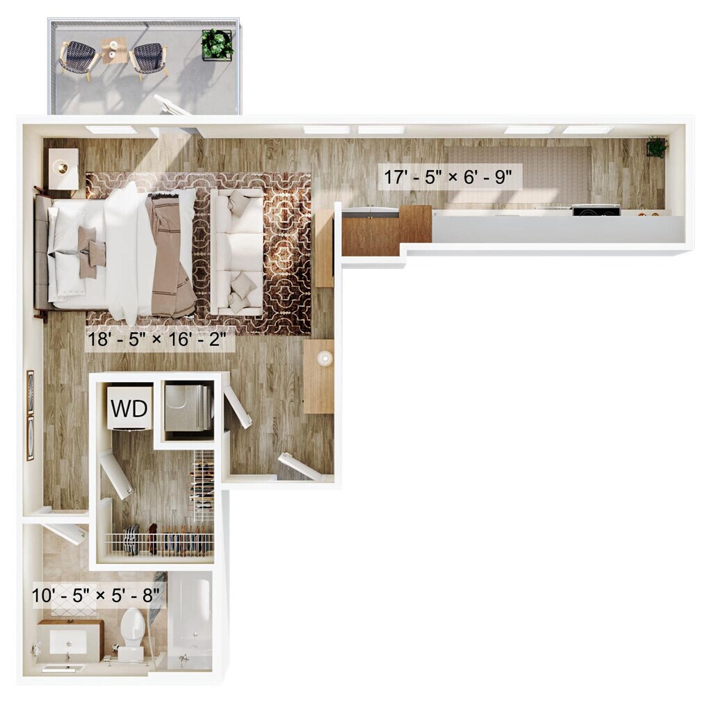 Modelo de apartamento: Gaia$1,520Estudio, 1 Baño, 542 sq ftDisponible June 4, 2026Planos3D Tours![]()