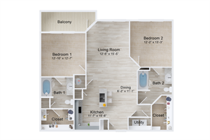 Modelo de apartamento: A3Desde $1,6801 Dormitorio, 1 Baño, 781-900 sq ftDisponible Ahora![]()