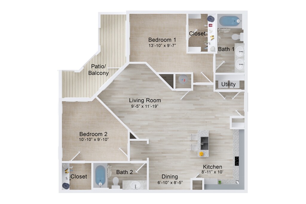 1 Dormitorio, 1 Baño, 781-900 pies²Disponible AhoraEl más grandeEsta opción tiene las unidades más grandes para este modeloGalería del Modelo