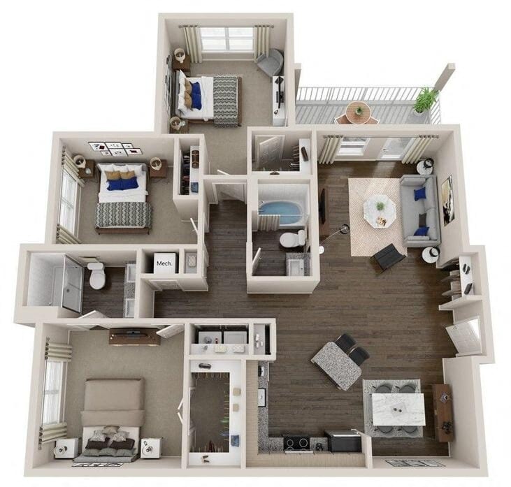 Modelo de apartamento: C13 Dormitorios, 2 Baños, 1356 sq ftDisponible December 15, 2025![]()