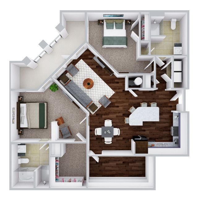 Modelo de apartamento: Pollock Penthouse2 Dormitorios, 2 Baños, 1875 sq ftNo Disponible![]()