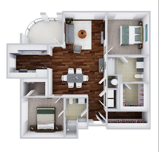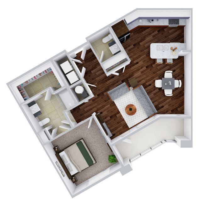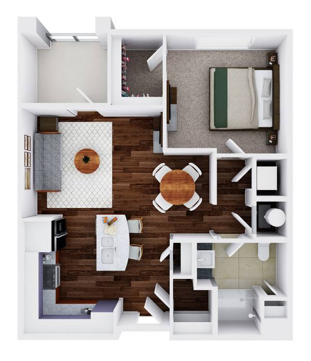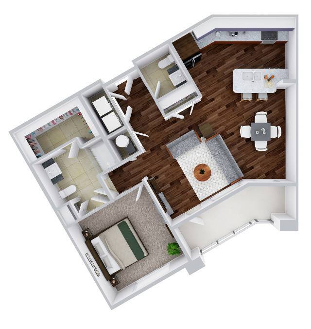 Modelo de apartamento: Botticelli "Deluxe"1 Dormitorio, 1 Baño, 643 sq ftDisponible Ahora![]()