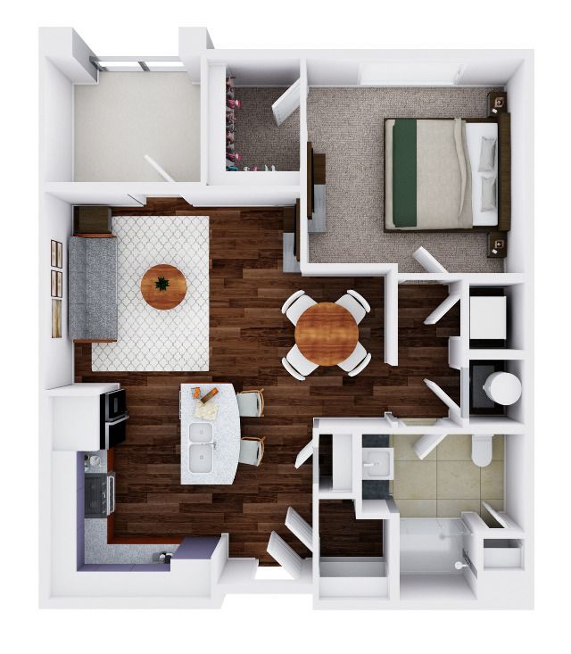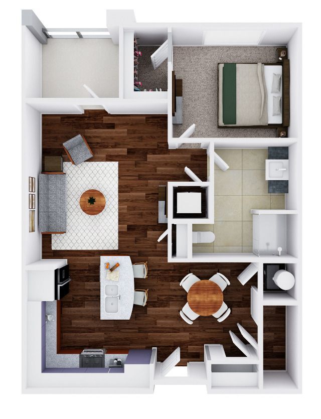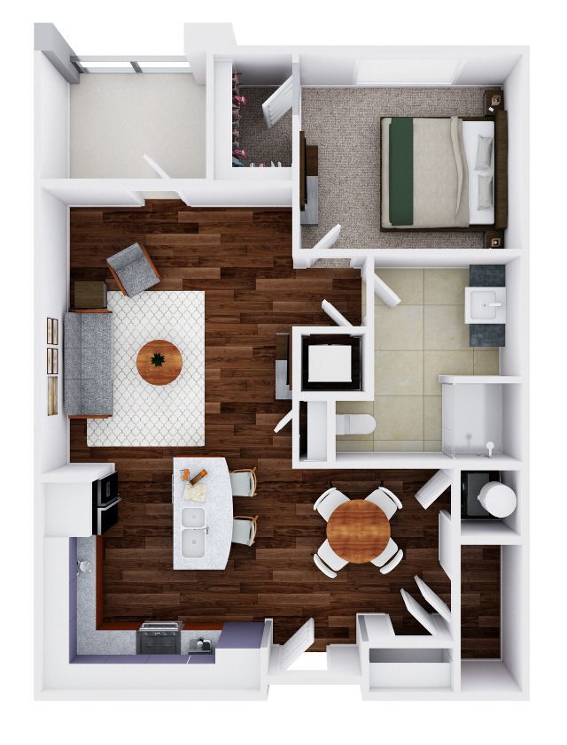 1 Dormitorio, 1 Baño, 643 pies²Disponible AhoraGalería del Modelo