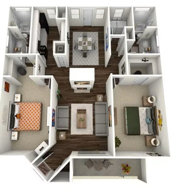 Modelo de apartamento: B2$1,2502 Dormitorios, 2 Baños, 1268 sq ftDisponible March 13, 2026![]()