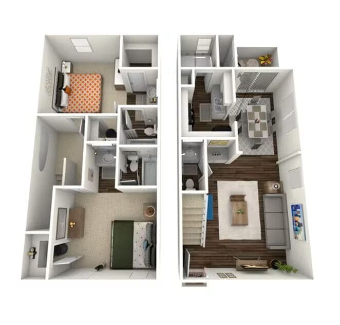 Modelo de apartamento: B4Desde $1,4172 Dormitorios, 2.5 Baños, 1227 sq ftDisponible Ahora![]()