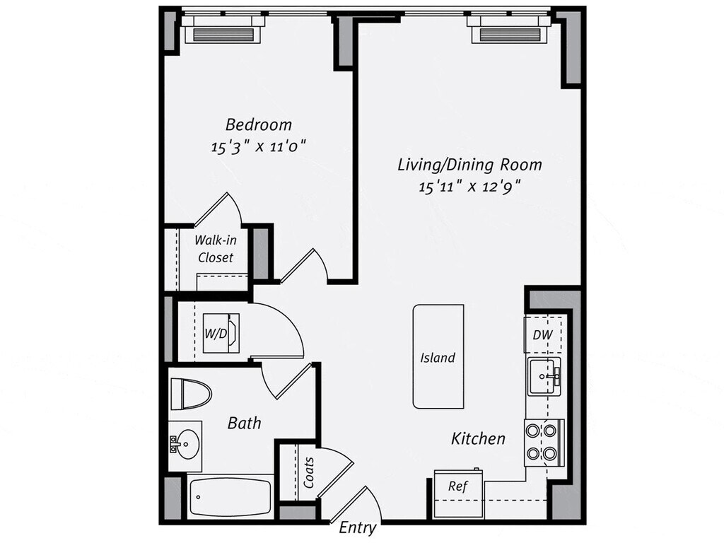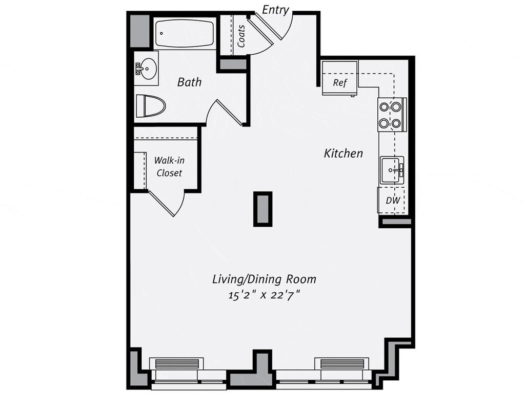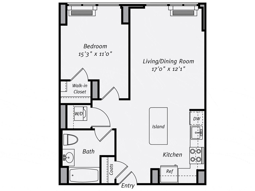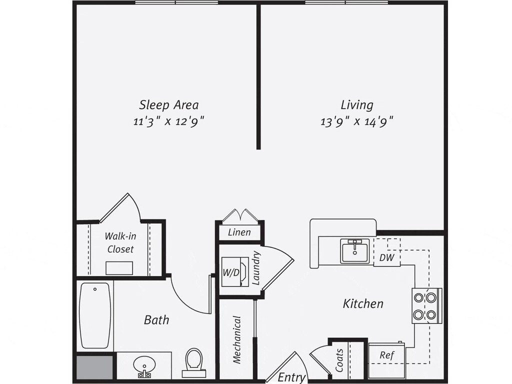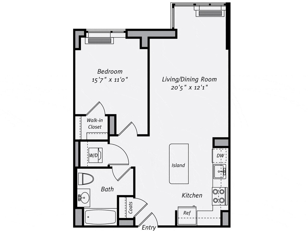 Modelo de apartamento: The SherwoodLlame para PreciosEstudio, 1 Baño, 469 sq ftNo Disponible![]()