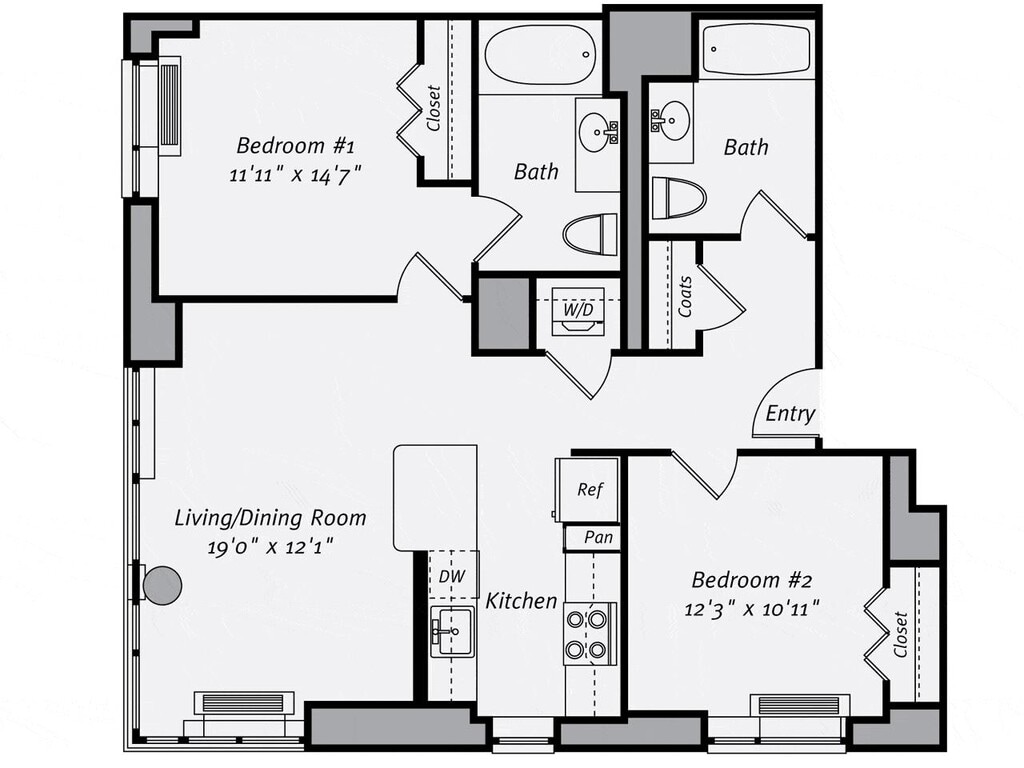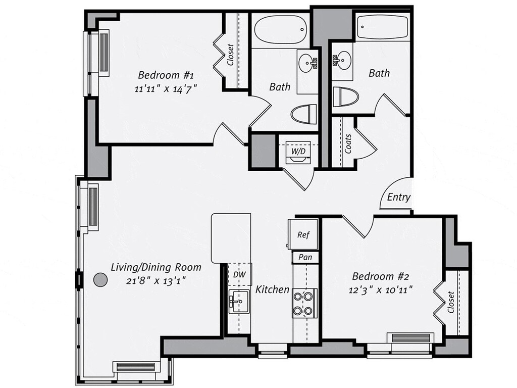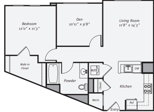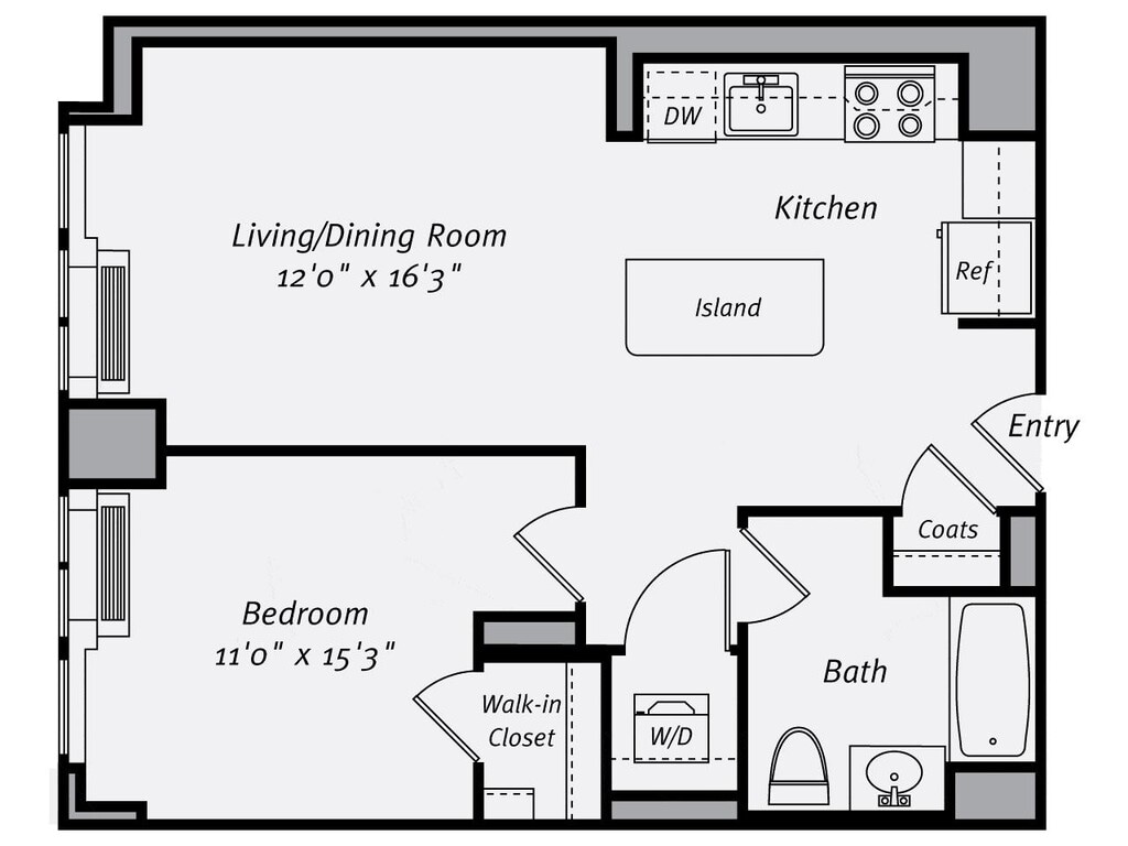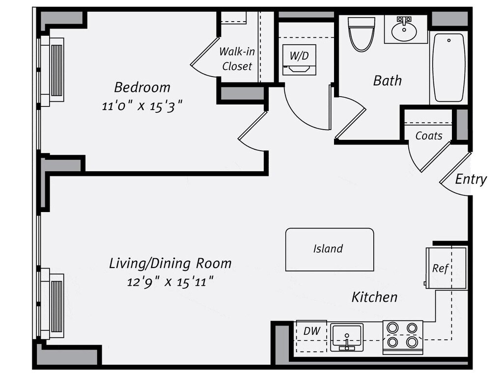 Modelo de apartamento: The SherwoodLlame para PreciosEstudio, 1 Baño, 469 sq ftNo Disponible![]()
