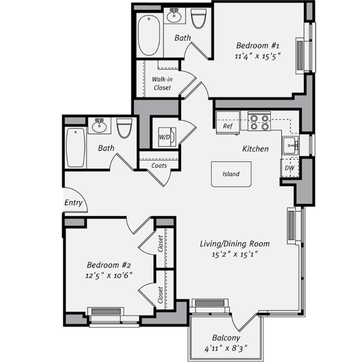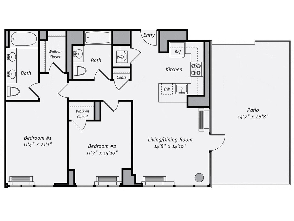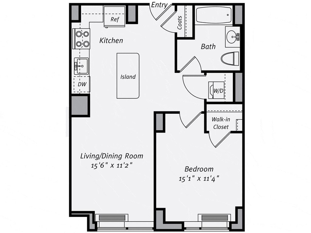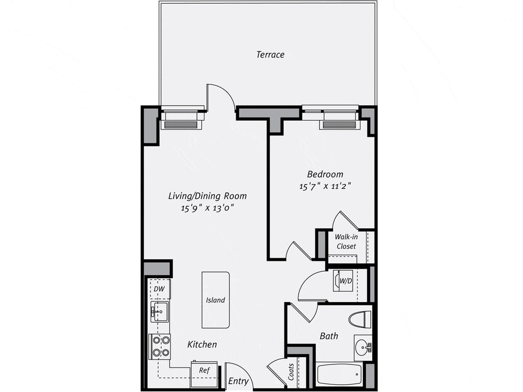 Modelo de apartamento: The SycamoreLlame para PreciosEstudio, 1 Baño, 540 sq ftNo Disponible![]()