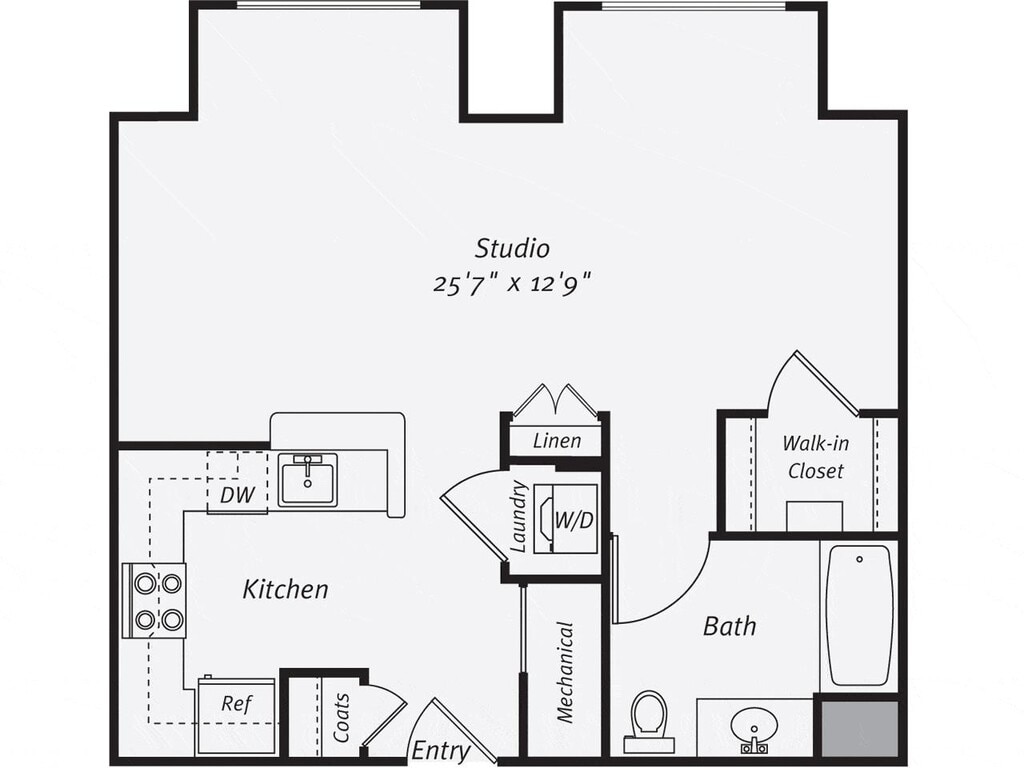 Estudio, 1 Baño, 668 pies²Galería del Modelo