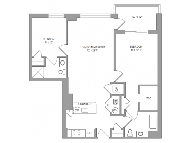 1BR/1BA Den - Plano 12 Unidad de apartamento: 311Modelo de apartamento: 1BR/1BA Den1 Dormitorio, 1 Baño, 855 sq ftDisponible January 17, 2026![]()