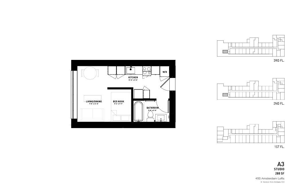 Estudio, 1 Baño, 280 pies²Disponible AhoraGalería del Modelo