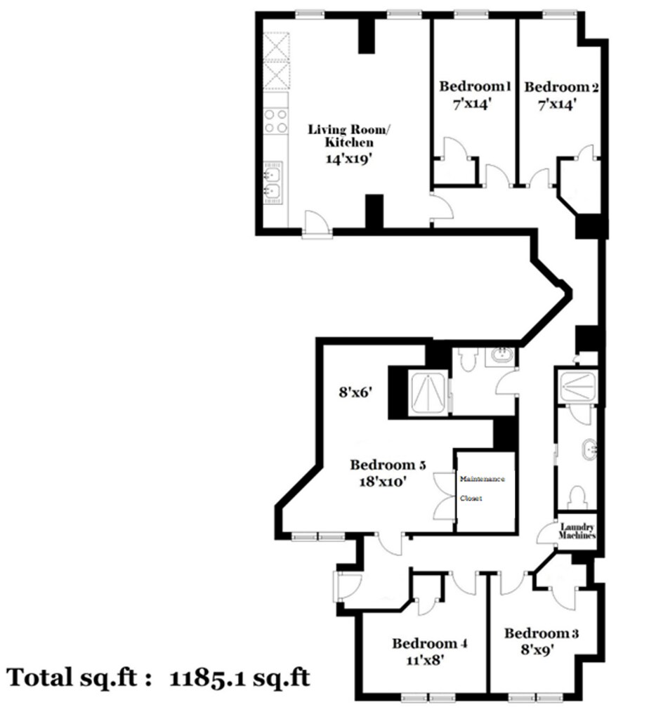 Unidad: 1305-A - Imagen 10 Unidad de apartamento: 1305-BModelo de apartamento: 6BR/2.0BA6 Dormitorios, 2 Baños, 1531 sq ftDisponible August 19, 2026![]()
