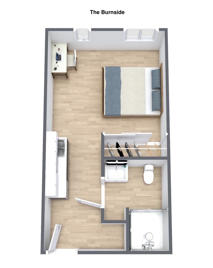 Modelo de apartamento: BurnsideDesde $895Estudio, 1 Baño, 305 sq ftDisponible Ahora![]()