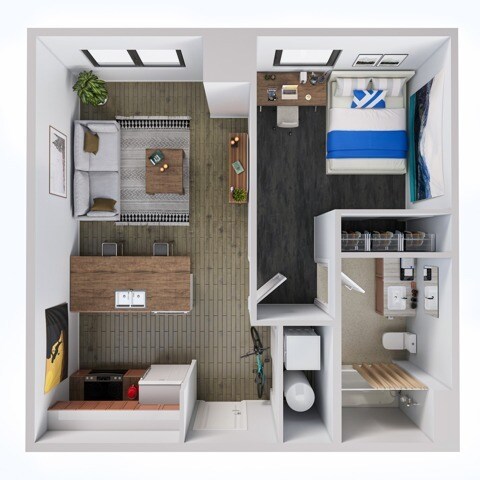 Modelo de apartamento: 1 Bed 1 bath$8751 Dormitorio, 1 Baño, 500 sq ftDisponible August 14, 2026![]()