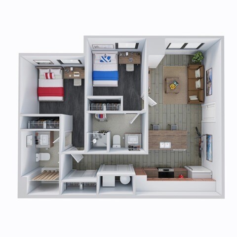 Modelo de apartamento: 2 Bed 2 Bath$6932 Dormitorios, 2 Baños, 700 sq ftDisponible August 14, 2026![]()