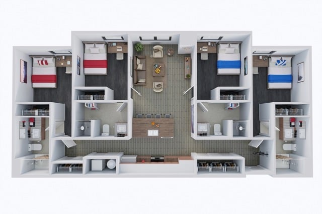 4 bed 4 Bath - Plano 1 Unidad de apartamento: PrivateModelo de apartamento: 4 bed 4 Bath$5724 Dormitorios, 4 Baños, sq ftDisponible August 14, 2026