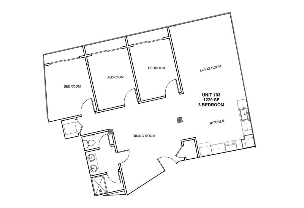 Modelo de apartamento: 103Llame para Precios3 Dormitorios, 1 Baño, 1220 sq ftNo Disponible![]()