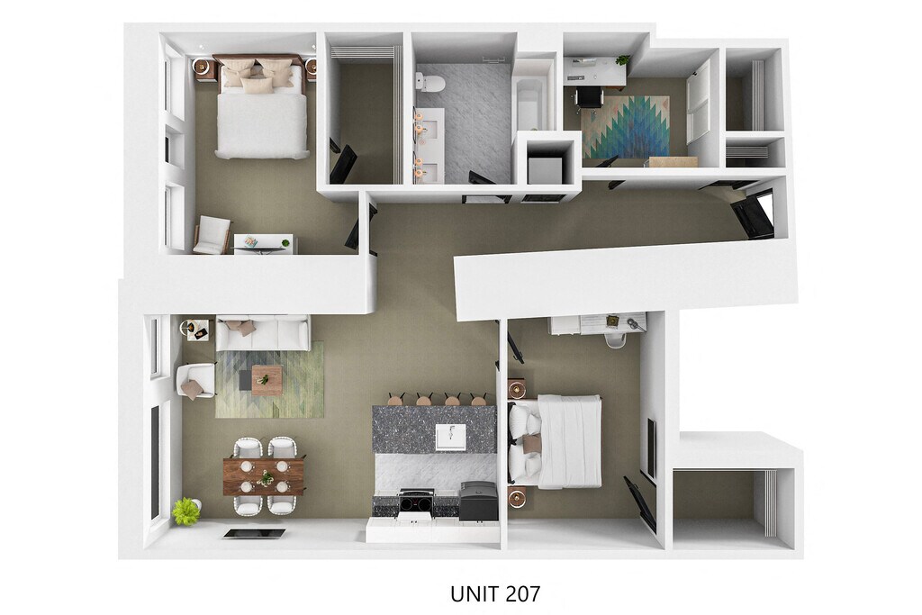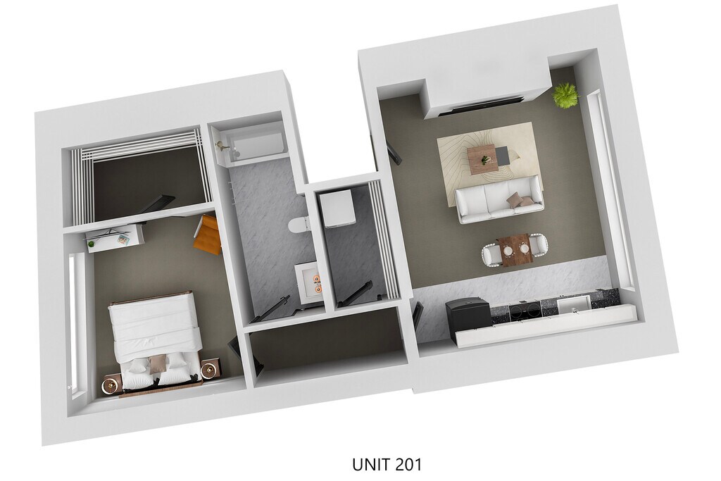 1 Dormitorio, 1 Baño, 750 pies²Disponible AhoraGalería del Modelo